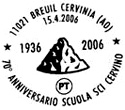 Numero: 315 FDC Data: 13/4/2006 Località: Breuil Filiale: Aosta Scadenza: 10/5/2006 70° Anniversario Scuola di Sci del Cervino |