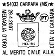 Numero: 419 Data: 29/4/2007 Localitą: Carrara Filiale: Massa Medaglia d'oro al merito civile alla Cittą di Carrara |