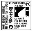 Numero: 1298 Data: dal 31/8 al 1/9/2007 Località: Riccione Filiale: Rimini 59° Fiera Internazionale del francobollo |