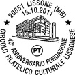 Numero: 1715 Data: 15/10/2011 Località: Lissone Filiale: Monza 40° Anniversario fondazione Circolo Filatelico Culturale Lissonese |