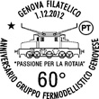 Numero: 1246 Data: 1/12/2012 Localitą: Genova Filiale: Spazio Filatelia Genova 60° Anniversario Gruppo Fermodellistico genovese Passione per la rotaia |