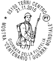 Numero: 1044 Data: 21/11/2015 Localitą: Terni Filiale: UP Terni Centro Mostra "Centenario I Guerra Mondiale" Giornata della Filatelia |