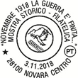 | Numero: 934 Data: 3/11/2018 Località: Novara Filiale: UP Novara Centro Novembre 1918 La guerra è finita... Mostra storico - filatelica |