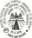 Numero: 985 Data: 10/11/2018 Localitą: Lodi Filiale: UP Lodi Fascetti Mostra filatelica "Laus Pompeia: frammenti di un Impero" Circoli Filateligio Lodigiano, cremasco, Cremonese, Banino, Cift e Uicos |