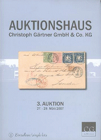 CHRISTOPH GAERTNER GmbH Steinbeisstrasse 6, D-74321 Bietingen-Bissingen (Germania) www.auktionen-gaertner.de, e-mail info@auktionen-gaertner.de 3^ Vendita all’asta dal 27 al 29 marzo 2007 Christoph Gaertner presenta la sua terza asta con due volumi, tutti a colori, dove molti lotti sono riprodotti in formato ridotto. E’ poi possibile, tramite il sito internet, vedere ogni lotto a video. |