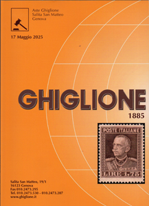 Ghiglione snc salita San Matteo 19/1, 16123 Genova GE, tel. 010.24 73 530, www.ghiglione.it, info@ghiglione.it . 121ª Asta Filatelica. 17 maggio 2025 Sono ben 2.444 i lotti presentati da Ghiglione in questo catalogo. In copertina il lotto 767, base € 12.500, un francobollo da 1,75 lire del 1929 con rara dentellatura. Al retro di copertina spicca il lotto 132, base € 3.500, una bella raccomandata del 1853 da Mantova a Parigi. L’asta inizia con parecchie prefilateliche, vie di mare e sanità. Prosegue con francobolli e lettere di tutti gli Antichi Stati Italiani. In quest’occasione, Lombardo Veneto, Modena, Napoli e Provincie Napoletane, diverso Pontificio, parecchia Sardegna. Poi Sicilia e Toscana. Tanti i lotti di francobolli e lettere del Regno d’Italia sia del 1800 che del 1900 con Posta Aerea con Trittici, BLP, Pubblicitari, Semi-statali. Poi francobolli nuovi di RSI, GNR, Repubblica con Ginnici, Gronchi rosa anche in blocchi. Segue San Marino e Vaticano, Occupazioni, Fiume, Uffici all’Estero e Colonie. Quindi qualche Paese Europeo, come Francia, Svizzera e Colonie Inglesi. In chiusura cartoline e 256 lotti di Lotti e collezioni. |