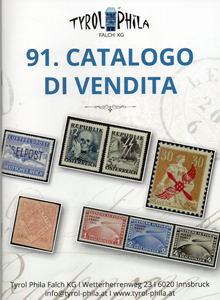 Tyrol Phila Falch kg Wetterherrenweg 23, A – 6020 Innsbruch, tel. 0043.512.361.532, fax 0043.512.365.630, www.tyrol-phila.at info@tyrol-phila.at Catalogo di Vendita a prezzo fisso n.91. Senza commissioni. A dire il vero i cataloghi sono due.
