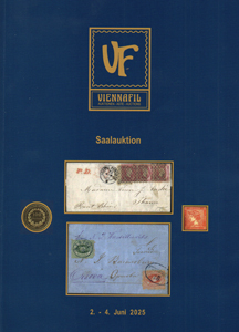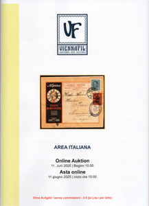 Viennafil Auktionen Auerspergstrasse 2/4 A, A 1010 Wien, tel. +43 (0)1 4051457, www.viennafil.com, info@viennafil.com. Asta per corrispondenza senza commissioni (solo 3 € di spese per lotto) Chiusura 11 giugno 2025. Due i fascicoli proposti. Nel primo Antichi Stati Italiani sono proposti 736 lotti. Francobolli, tanti!, ed anche lettere e annullamenti di tutti. In particolare di Lombardo Veneto 295 lotti, poi Modena, Napoli, Parma, bei lotti di Posta militare austriaca nel Pontificio, come il lotto 10355 di copertina, proposto a base 600 €. Poi parecchio Pontificio con Romagne, molta Sardegna con annullamenti, diversa Sicilia e Toscana. Il secondo è per l’Area italiana con a quasi 1.000 lotti. Dal Regno d’Italia di Vittorio Emanuele II e Umberto I a quello lungo di Vittorio Emanuele III con annullamenti, affrancature, Posta aerea e Zeppelin. Naturalmente anche Colonie, Possedimenti, Occupazioni. E Poi Repubblica Sociale ed Italiana, San Marino e Vaticano. Curiosa e da meditare è l’offerta finale di una 40ina di lotti con migliaia di francobolli nuovi italiani in euro a poco più della metà del facciale. Vi ricordo che per Viennafil potete scrivere, inviare email o chiedere informazioni in italiano. Michael Stauder ed i suoi collaboratori della Viennafil sono normalmente presenti nei maggiori convegni italiani, in particolare quello di Verona. |
