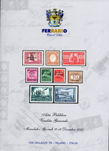 Ferrario Aste srl Via Vallazze 78, 20131 Milano, tel. 02 49 53 57 20, info@ferrarioaste.com, www.ferrarioaste.com Asta pubblica. Vendita Generale. Mercoledì 17 e giovedì 18 dicembre 2025 presso la Sede di via Vallazze 78, ma anche LIVE e per corrispondenza Asta “natalizia” e, come al solito, catalogo importante, e pesante in tutti i sensi, col quale sono presentati ben 3.134 lotti proposti in tre sessioni. In copertina, al retro e nelle pagine interne di copertina una marea di francobolli della vasta Area Italiana, Occupazioni, Colonie, San Marino e Vaticano compresi, ma anche Cina e Oltremare. La prima sessione di 888 lotti è dedicata agli Antichi Stati italiani con tante lettere, ma soprattutto francobolli. Lombardo Veneto, Modena e Governo Provvisorio con affrancature e rari annullamenti, molto Napoli e Provincie Napoletane anche qui con affrancature, annullamenti e rarità, come il lotto 113, base € 5.000, una lettera con un 2 grana del 2 gennaio 1858, primo giorno di emissione e il lotto 212, base € 30.000, l’unico 5 grana falso di Province Napoletano proveniente dalla collezione Imperato. Buono anche Parma e Governo Provvisorio. Numeroso come al solito lo Stato Pontificio con Romagne, dove spicca il lotto 448, base € 20.000, una fascetta del 1869 con un 3 cent II emissione ed un 5 cent dentellato. Poi Sardegna con diversi Cavallini, annullamenti e affrancature delle varie emissioni, una ricca Sicilia e una Toscana da non certo da trascurare, come dimostra il lotto 856, base € 20.000, una lettera del 1859 da Firenze a Parigi affrancata con due coppie del 9 crazie. Nella seconda sessione più di 1.000 lotti di Regno d’Italia di Vittorio Emanuele II, Umberto I e Vittorio Emanuele III, anche qui con numerose e rare proposte di francobolli, affrancature, lettere particolari e, mi ripeto, veramente tanti francobolli. Soprattutto di Posta Aerea con tanti Trittici e Zeppelin. Seguono Espressi, Segnatasse, Buste Parlanti, Francalettere, BLP, Pubblicitari, Parastatali, Prove e Saggi. Poi tanta GNR e Repubblica Sociale Italiana. Segue Repubblica Italiana con i primi anni (Risorgimento, Caterina, Volta, …anche in fogli o blocchi!) e Gronchi Rosa anche in quartina. È poi la volta di Trieste A e B, Emissioni locali, CLN, Corpo Polacco. La terza sessione di altri 1.220 lotti inizia con le Occupazioni della Prima e Seconda Guerra Mondiale, Fiume, Uffici all’estero con anche un 2 dollari Pechino caratteri maiuscoli (lotto 2174, base € 25.000) e segnatasse 4 su 10 cent (lotto 2178, base € 23.000). Poi Colonie Italiane con parecchie rarità, come il lotto 2526, base € 12.000, la serie Occupazione inglese dell’AOI del 1941. Quindi molto San Marino con tanti primi numeri anche in grandi blocchi e numerosi foglietti. Vaticano con Provvisorie e Varietà. Segue Europa, specialmente Austria, Regno Unito. Poi molta Cina e un po’ d’Oltremare.In chiusura 235 lotti di Lotti e collezioni dove trovare tante, tante cose degli argomenti sopra elencati. |